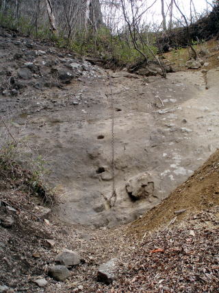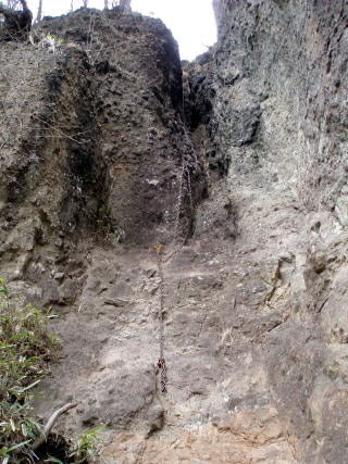 入山川沿某所 8:20〜10:35 谷急山 11:00〜12:10 三方境 12:25〜14:05 丁須の頭 14:40〜17:15 あさおの吊り橋P 8:20 入山川沿いの某所によっちゃん号を置き出発。 ガードレールの切れ目から椎茸栽培小屋脇を通り、入山川を飛び石伝いに渡って 取り付き点の登山口へ。 鉄塔点検路を途中まで利用し登り、木々の間を縫い、落ち葉に覆われた急斜面を 裏谷急沢へ向けて慎重に下る。 8:40 沢へ下り、以前歩いたことのあるよっちゃん御夫妻が目印にしていた対岸の 炭焼き場跡へ向けて、飛び石伝いに裏谷急沢を渡る。 ![]() ↑炭焼き場跡 炭焼き場跡を右手に、よっちゃんを先頭に、左側の適当な斜面に取り付き尾根に 向う。枯葉に深く覆われた斜面は、足を置いてみるまで状況がわかり難いので、落 ちていた枝を杖代わりに使い慎重に進む(^^; 8:55 ひと登りして高度を稼ぎ、平坦なところで小休止。 9:00 出発。更に尾根へ向けて歩を進める。 ![]() 30分ほどするとナイフリッジの稜線に出た。わ〜い♪イイ眺め(^^)v 9:35 よっちゃん曰く、本日の核心部は、これから谷急山頂までのダイナミックな 岩稜登りだとのことで、お天気も良く順調なので、のんびり休憩することに。 ![]() 山急山(992m)を望む ↓浅間山 ![]() 肉眼では、西の方にはうっすらと八ヶ岳が見える♪ ![]() 柱状節理の屏風岩(←勝手に命名) 9:45 景色を楽しみ出発。 ![]() ナイフリッジ尾根に佇むよっちゃん 段差の大きな岩稜を登り詰める。岩はしっかりしており不安はない(^^) 10:35 妙義山塊最高峰・谷急山(1162m)着。大休止。 私達だけ貸切の山頂♪ 行動食のパンを食べる。 ![]() 谷急山頂より望む裏妙義の山々 11:00 出発。 特に危険箇所もなく、淡々と歩を進める。 ↓谷急山 ↓浅間山 ![]() P2付近より望む 12:10 三方境着。行動食のパンを食べる。 12:25 出発 ひと登りで風穴尾根ノ頭へ。これから辿る裏妙義の特徴ある山々が見える。 ↓烏帽子岩 ↓赤岩 ![]() 風穴尾根ノ頭より望む 12:55 烏帽子岩の基部を鎖でトラバースする。↓ ![]() 13:15 赤岩基部手前も鎖でトラバース。↓ ![]() 13:30 ↓ トラバースの後は、直立した10mの鎖場で〜す♪ ![]() 13:50−55 ↓地図表記 チムニー内20mの鎖場 (小休止) ![]() 小休止中鎖場を前に、よっちゃんからアドバイスを受けていたところ、ひーちゃんが 鎖場の上で数人の気配を感じ知らせてくれた。 ザイルの仕度など始めたので、(待ち時間が多くなることが予想されたので)私達 は休憩もそこそこに、声をかけ先に登らせてもらうことに。 ガイドブックによれば、三方境〜裏妙義縦走中最難所の鎖場と書かれているが、 先月の表妙義縦走で鎖場には大分慣れてきたので、登りでもあることだし?なぜ かハイジは躊躇わず??、三師匠の模範登りを見ずに先頭に取り付いてしまった。 ハイジに続きよっちゃん、ひーちゃん、ちー隊長の順に連なる。 ルート取りも未熟なハイジは、一気に上りきることができず、途中で岩の間に身体 を預け体勢を立て直すハメに・・・(^^;; 上画像上部で、鎖は左へまきぎみに付いているので、素直に従うのが正解でした。 三師匠を鎖場上でお待たせしてしまいました〜〜(^^;;; m(_ _)m 鎖場を登りきったところで、待っていただいている6〜7名の中高年パーティーに 『お待たせしました♪ あと三人続きます』と、ご挨拶する。しかし無言で素っ気無い。 (注:決してマナー範疇?を越えるほど、ハイジが遅かったわけではないのだが・・・) その後に続く三師匠の速い事! お見事〜〜〜〜!! 岩稜を少し進むと、裏妙義のシンボル・丁須の頭が見えてきた♪ ↓丁須の頭 ![]() 14:05 丁須岩の鎖場を登り、一般者が登ることが出来る頭の基部着。 ↓丁須の頭 ↓頭の基部 ![]() 丁須の頭には鎖は付いているが、一般者が岩上に立つことは難しそうだ。 この度は、わがパーティーを代表して、リーダーよっちゃんにピークへ立っていた だいた(^^)v ↓よっちゃんで〜す♪ ![]() ![]() 丁須岩より望む妙義湖 14:40 出発 15:05−15 小休止 ![]() 地図表記 ふられやすい7mの鎖場を下るよっちゃん 15:45 御岳(963m)通過 ![]() 御岳山頂 お天気予報は、夕方所によりにわか雨。 私達の頭上の雲も厚みを増してきた(^^; 下山するまで降らないでほしいところだが・・・と思いつつ、淡々と歩を進める。 16:20 黒い雲が上空を覆い、とうとう本降りとなってきた(^^; 久しぶりにカッパのお世話になることに・・・。 着用後、雨の中もくもくと下る。 ザンゲ岩と思しきところの下部を通る。飛び出た岩を伝い滴り落ちる雨水が、裏見 の滝を思わせる(ちょっと大げさな表現か・・・) 10分ほどで岩壁を鎖で下ると、 あさおの滝と遊歩道が現れた。 あさおの吊り橋を渡り、裏妙義大縦走を無事終える。 ![]() 17:15 あさおの吊り橋P着。(水洗トイレ有り) 17:30 よっちゃん号を回収。(その後それぞれの予定があるので解散する) おつかれさまでした〜♪ |