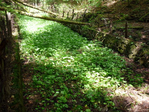 12:10−15 日輪寺(小休止) ![]() 日輪寺 (トイレ棟&駐車場あり) ![]() 日輪寺からは林相が変わり杉林に ![]() ワサビ田が美しい♪ 12:35 ワサビ田から広葉樹林を緩やかに登り返し、日輪寺入口駐車場着。 |