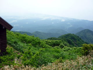 13:45 米山(993m)着。大休止。遠景は霞み残念だが、海がかろうじて見えた♪↓